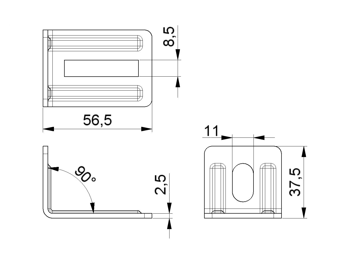 Montážny uholník DOCO 24622 56,5x37,5 mm