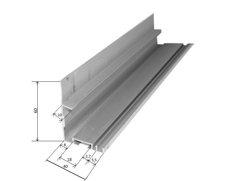 Spodný hliníkový L - profil pre spodnú tesniacu gumu.